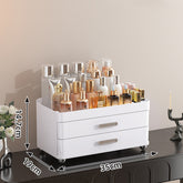 Unlike other makeup organizers that only feature 2 drawers, ours offers an enhanced storage capacity. The top two layers can accommodate perfumes, skincare products,